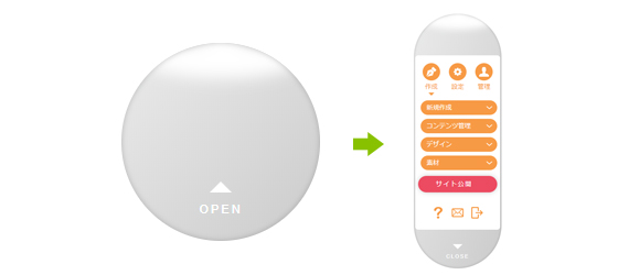 「CMS名称」にログインした編集サイトの画面に表示されるメニューボックスを『コントロールパネル』といいます。